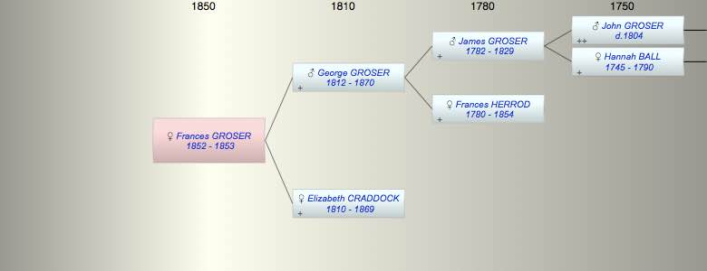 | Apr 1853 | Frances Julia GROSER died | Lambeth, London, England | 73 | ||