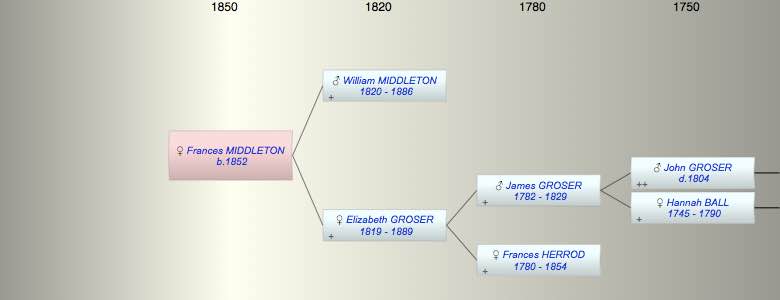 | 12 May 1852 | Frances Susan MIDDLETON was born | Southwark, London | 62, 68, 119 | ||
