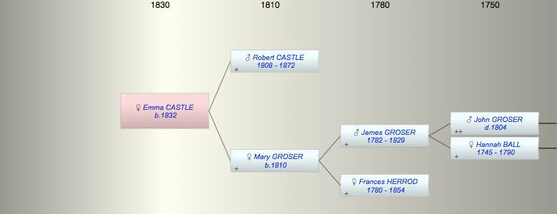 | 1832 | Emma CASTLE was born | London, UK | Note 1 | ||