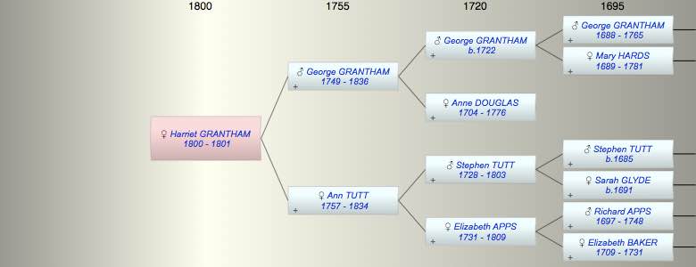 | 25 Jun 1800 | Harriet GRANTHAM was born | Lewes, Sussex, England | 52, 182 | ||
